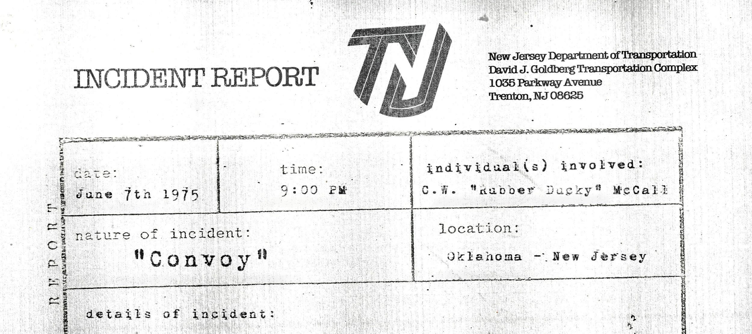 Mr. McCall AKA “Rubber Ducky” arrived in Ocean City, NJ around 11 AM on June 7th. His cargo consisted of 40 tons of unmilled trees and appeared to be mostly intact. However, I feel that the situation surrounding its delivery deserves review by the company. In addition to his cargo, Mr. McCall arrived with an atypical amount of unscheduled deliveries and was pursued by a significant amount of local and state police in what can only be described as a “convoy”. The following report lays out the previous day’s events according to Mr. McCall’s own recollection.